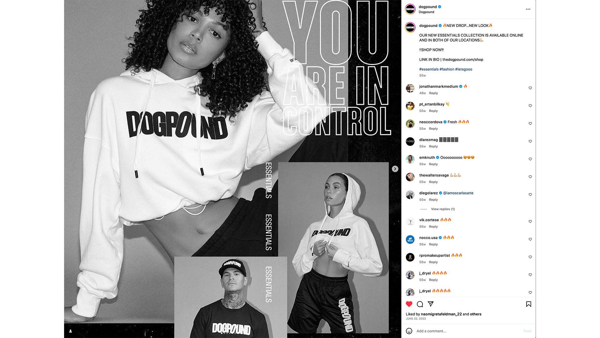 Social media content for DOGPOUND "Essentials" product release. 2022.