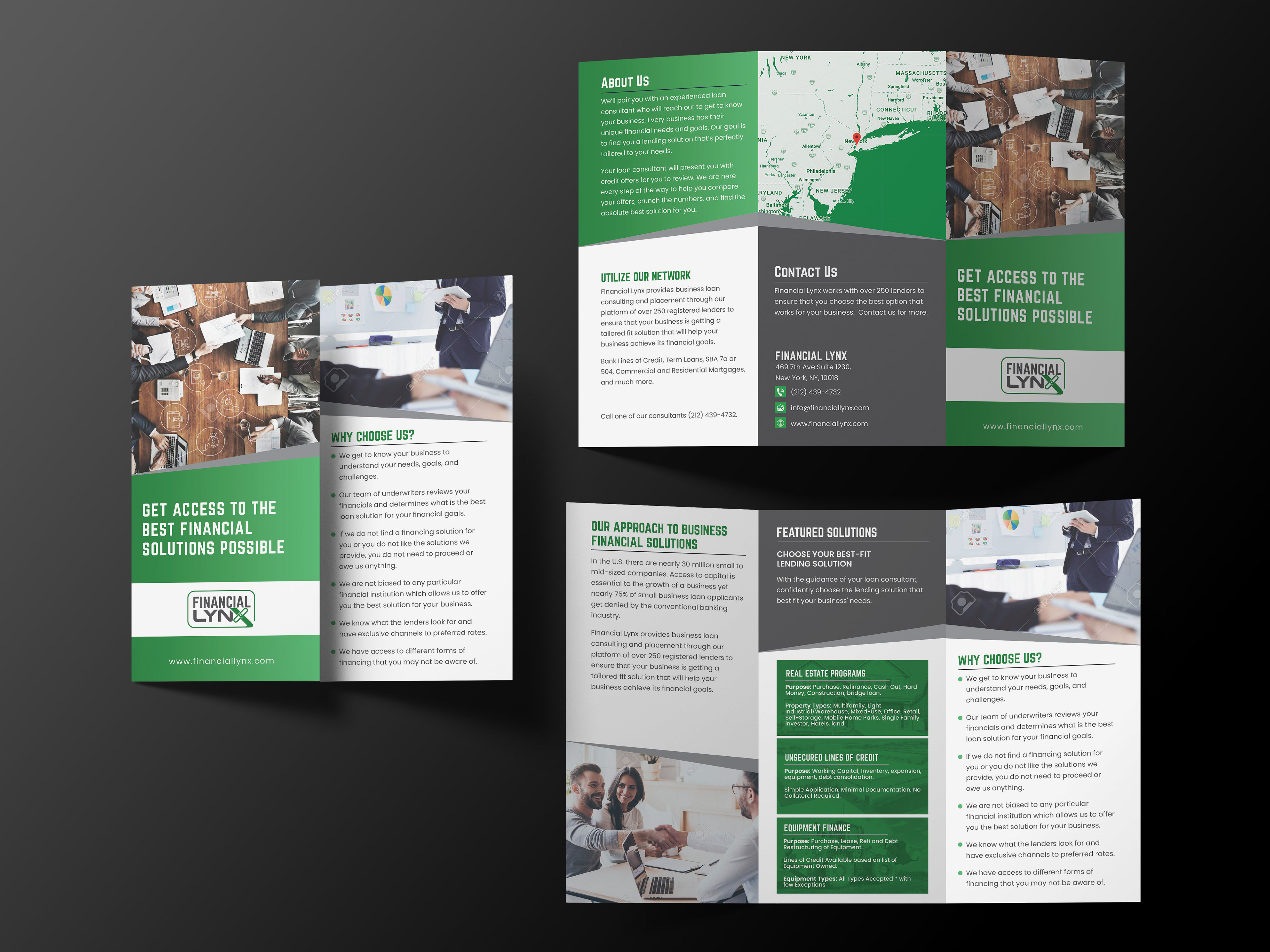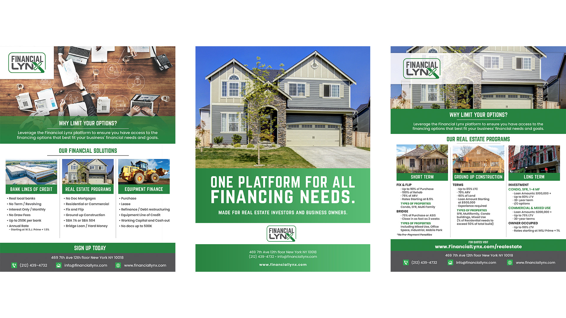 Convention assets for Financial Lynx, 2022-2023. Print design (left to right).
